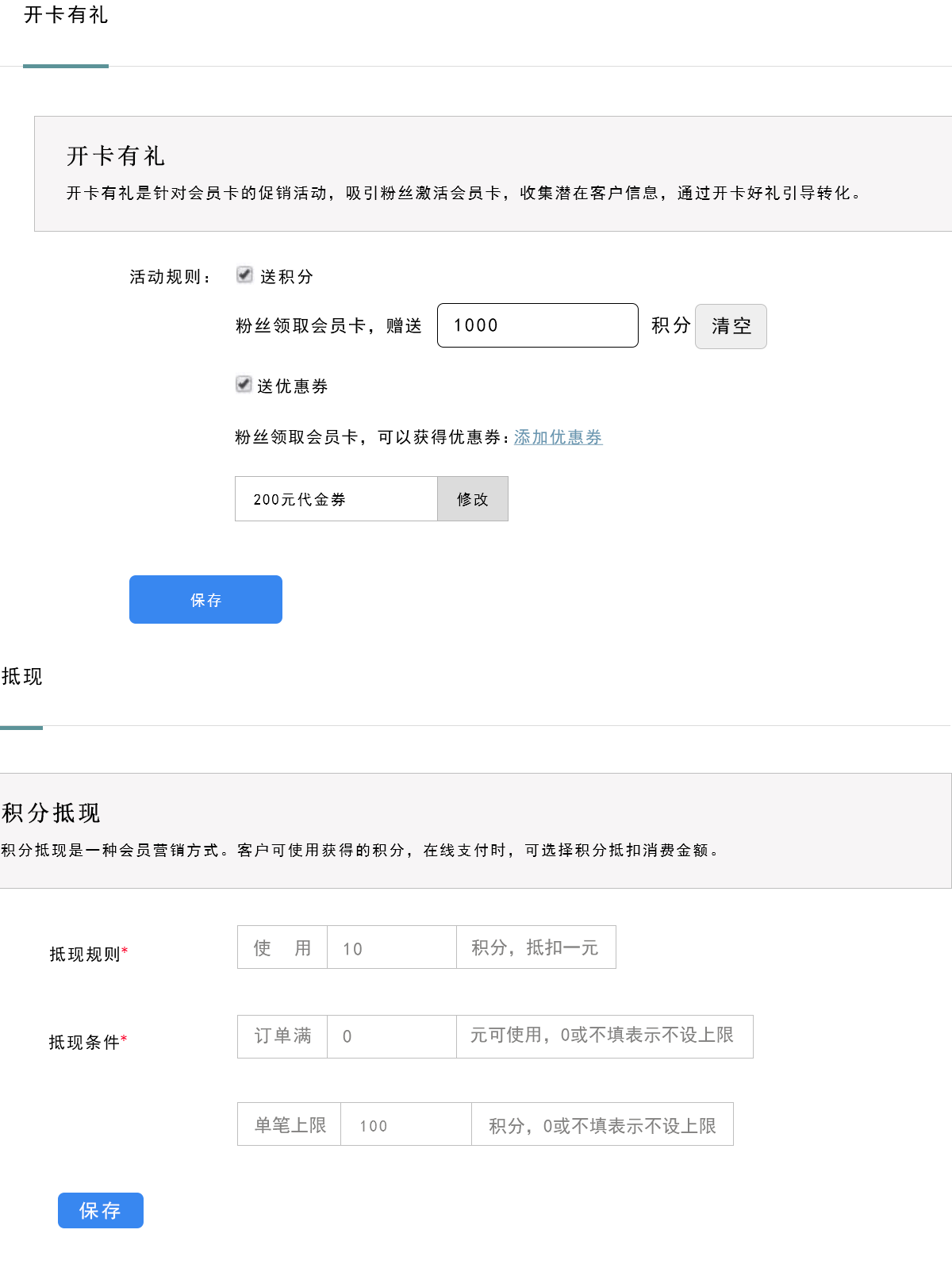 开发新客户的成本是留住老顾客的5倍以上。只有顾客忠诚了才会回头,那么我们卡逸客就具备留住老顾客的营销方案。按照不同的顾客类别,可以设立开卡有礼,是针对会员卡的促销活动吸引粉丝激活会员卡,并赠送积分卡、贵宾卡等卡种。这些卡虽然形式不同,但起到的作用从根本上市一致的,即其能够给顾客带来尊宠感,并让顾客享受一定的优惠。
